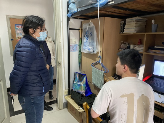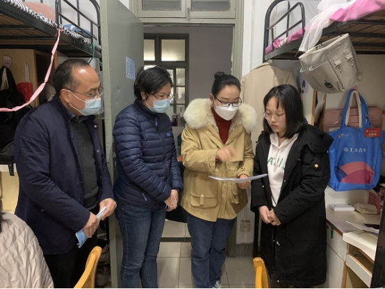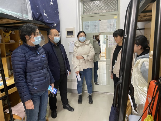 近期,学院领导班子和全体辅导员深入学生走访宿舍、走访实验、在线听课等开展疫情期间学生动态掌握。在宿舍里,老师们与同学们亲切交谈。重点了解疫情防控、宿舍卫生状况、线上学习状况等方面的现状和需求,引导同学们切实把思想和行动统一到学校和学院的疫情防控决策部署上来。嘱咐大家做到坚持每日按时上课、坚持每日互帮互促、坚持每日健康打卡、坚持每日早午晚体温监测、坚持每日强身健体。刘书记针对毕业班学生就就业和考研复试准备情况,勉励同学们在关键学期保持良好心态,积极准备就业和复试,争取获得满意的工作或考取理想的大学。