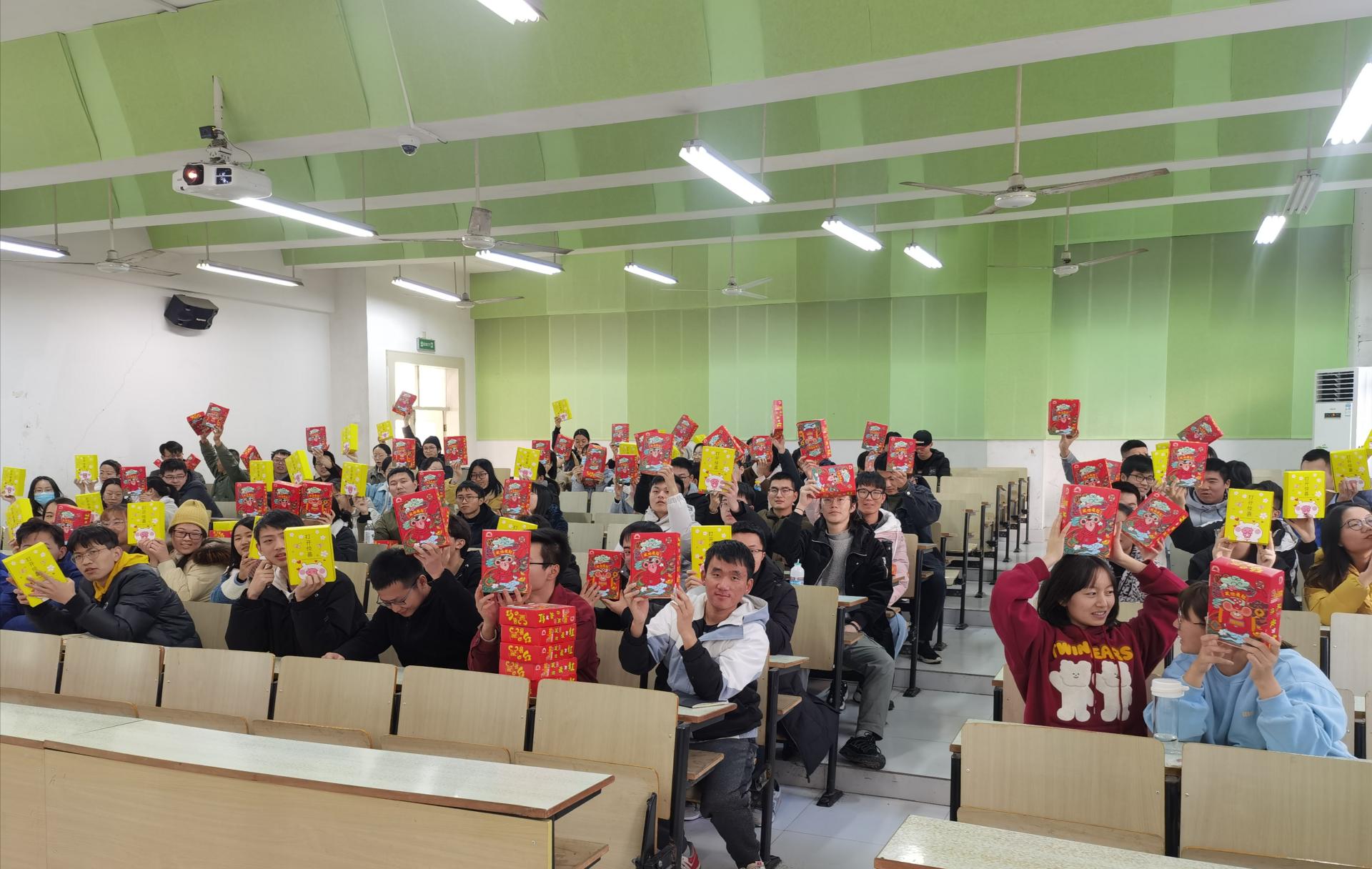 何冰芳老师首先鼓励同学们在最后冲刺阶段,要规划好复习时间和复习内容,做到有的放矢。同时要合理安排作息时间,注意饮食、适量运动,保持积极乐观的心态。姜天玥老师代表班主任老师建议同学们在战略上藐视敌人,战术上重视敌人。保持良好心态,劳逸结合,争取在考场中发挥出最佳水平。会上还播放了班主任赵晔老师、朱静怡老师等暖心视频和谆谆嘱咐。最后,老师们为考研学子们送上了“爱心盲盒”,有寓意“事事顺心”的柿饼、刻有专属名字的书签和防寒保暖用品。