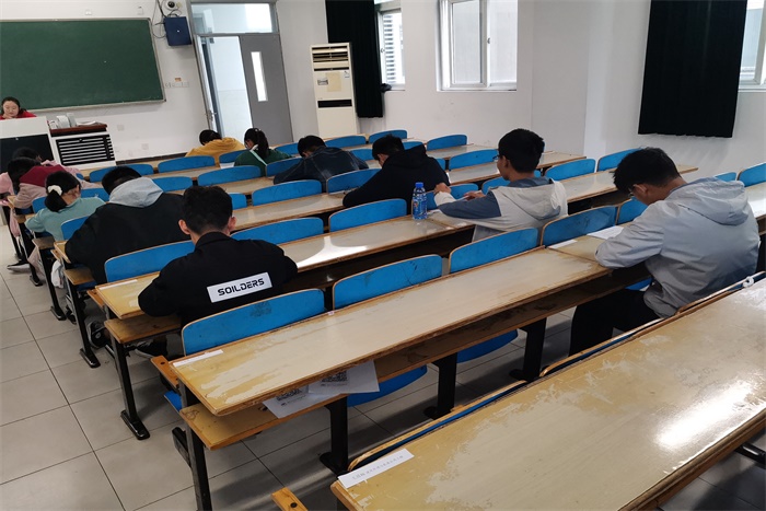 本次比赛以闭卷考试的形式进行,考题由实践题、选择题和拔高题三部分组成。内容紧扣大学生心理健康教育,由浅及深,多个层次考察学生对心理知识的掌握和自我心理的调控支配能力。笔试现场紧张有秩序,参赛同学沉着冷静答题。