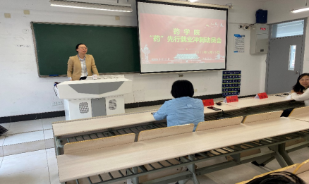李学明院长首先和大家分享了古希腊哲学家柏拉图捡麦穗的故事,启示同学们在做选择时,要分析自己的优势和劣势,适合自己的才是最重要的。其次鼓励同学们认清就业形势,抓住机遇,早日找到心仪的工作。强调毕业生就业工作既关系着学院的长远发展,也关系着每一位毕业生的切身利益。最后,嘱咐药苑学子要有家国情怀,将自身发展与国家需要结合起来,推动事业发展与国家发展同频共振,既有仰望星空的志向又兼具脚踏实地的能力,勤思考、勤实践,早日成为建设祖国的栋梁之才。