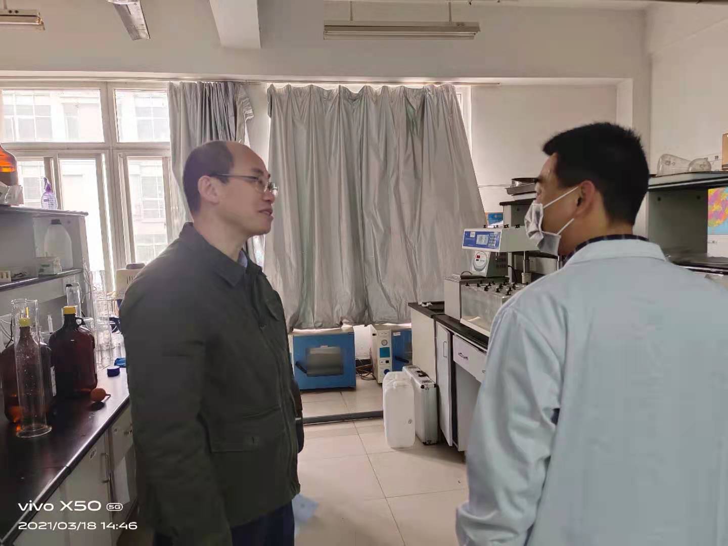 院领导对6165cc金沙总站检测中心所属实验室逐间进行安全环保检查,重点排查了危险源,检查了实验室管控试剂使用台账、非管控试剂清单等,并与实验室老师、同学沟通,提出明确要求与整改建议,叮嘱同学们在实验过程中要做好个人防护、注意操作规范。