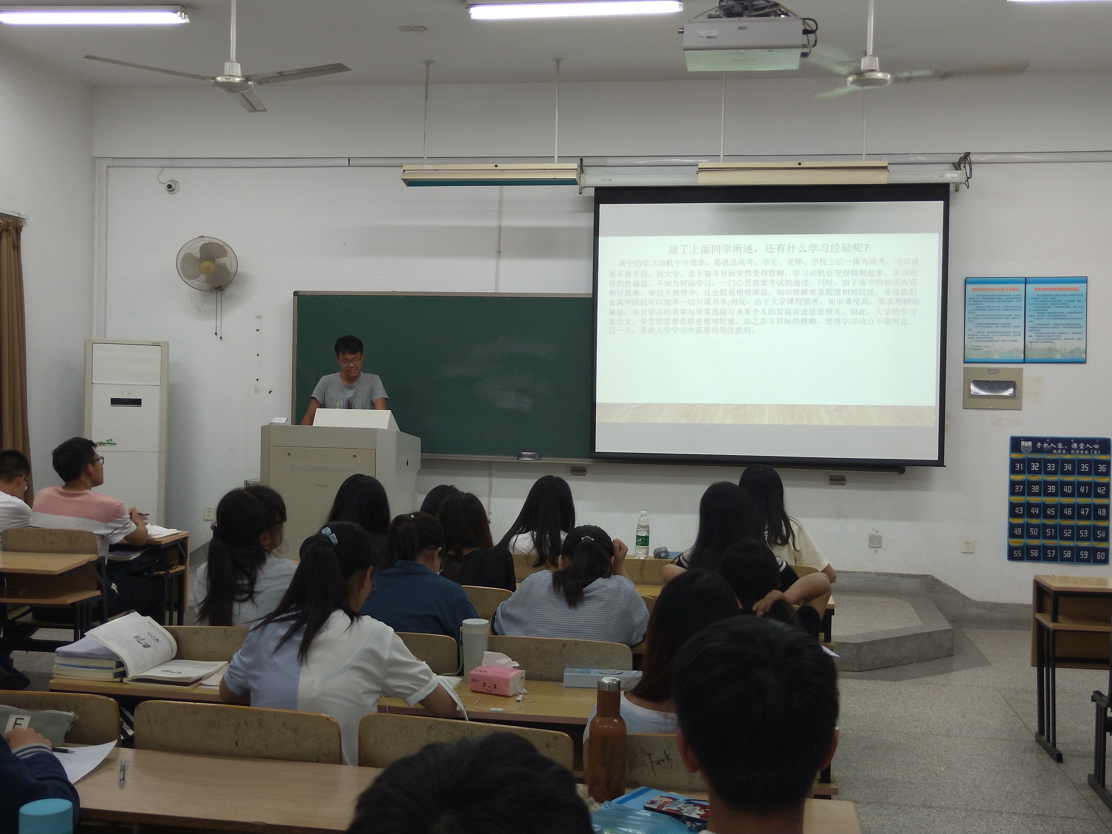 骄阳似火的五月,正值学风建设重点建设月,为加强18级同学们对学习目标的明确,对学习方法的深度掌握,帮助同学们更好提高课堂效率,促进学风建设。5月23日晚18:40,6165cc金沙总站检测中心邀请了2018级特等奖学金获得者分享自己的课堂笔记和课余学习经验交流会。6165cc金沙总站检测中心2018级全体同学参与了此次交流会。